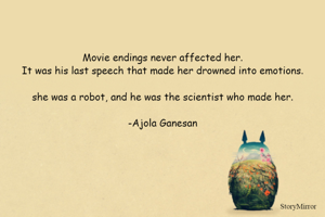 Movie endings never affected her. It was his last speech that made her drowned into emotions. she was a robot, and he was the scientist who made her. -Ajola Ganesan