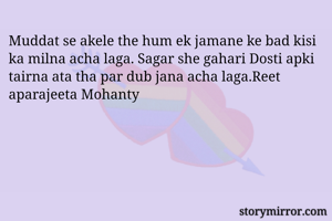 Muddat se akele the hum ek jamane ke bad kisi ka milna acha laga. Sagar she gahari Dosti apki tairna ata tha par dub jana acha laga.Reet aparajeeta Mohanty