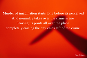 Murder of imagination starts long before its perceived And normalcy takes over the crime scene leaving its prints all over the place completely erasing the any clues left of the crime.