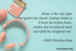 Music is the only light that guides the chaotic feelings inside us It heals the broken heart, soothes the bewildered mind and uplift the delighted soul - Molli Sherchan Kaur