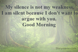 My silence is not my weakness. I am silent because I don't want to argue with you. Good Morning