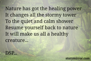 Nature has got the healing power It changes all the stormy tower To the quiet and calm shower Resume yourself back to nature It will make us all a healthy creature... DSP...