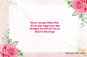Never accept those that Gives you happiness too Without the Will of Christ. © Emil Bershiga