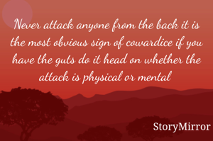 Never attack anyone from the back it is the most obvious sign of cowardice if you have the guts do it head on whether the attack is physical or mental