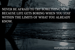 NEVER BE AFRAID TO TRY SOMETHING NEW. BECAUSE LIFE GETS BORING WHEN YOU STAY WITHIN THE LIMITS OF WHAT YOU ALREADY KNOW.