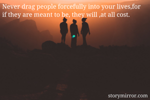 Never drag people forcefully into your lives,for if they are meant to be, they will ,at all cost.