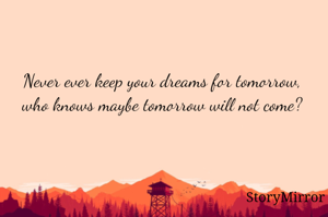 Never ever keep your dreams for tomorrow, who knows maybe tomorrow will not come?