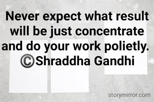 Never expect what result will be just concentrate and do your work polietly. ©️Shraddha Gandhi
