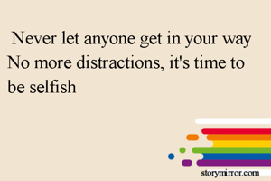 Never let anyone get in your way No more distractions, it's time to be selfish