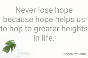 Never lose hope because hope helps us to hop to greater heights in life.
