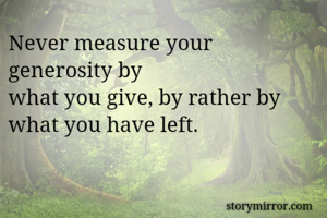Never measure your generosity by what you give, by rather by what you have left.