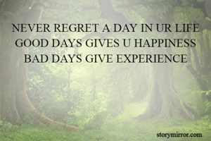 NEVER REGRET A DAY IN UR LIFE GOOD DAYS GIVES U HAPPINESS BAD DAYS GIVE EXPERIENCE