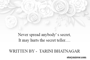 Never spread anybody' s secret, It may hurts the secret teller..... WRITTEN BY - TARINI BHATNAGAR