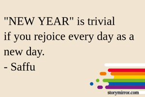 "NEW YEAR" is trivial if you rejoice every day as a new day. - Saffu