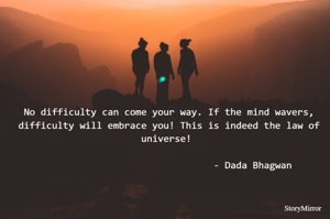 No difficulty can come your way. If the mind wavers, difficulty will embrace you! This is indeed the law of universe! - Dada Bhagwan