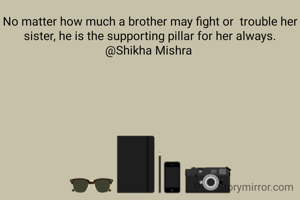 No matter how much a brother may fight or trouble her sister, he is the supporting pillar for her always. @Shikha Mishra