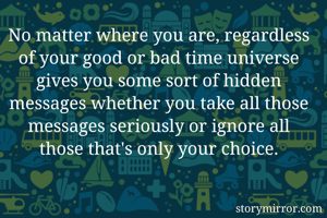No matter where you are, regardless of your good or bad time universe gives you some sort of hidden messages whether you take all those messages seriously or ignore all those that's only your choice.