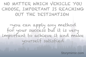 NO MATTER WHICH VEHICLE YOU CHOOSE, IMPORTANT IS REACHING OUT THE DESTINATION -you can apply any method for your success but it is very important to achieve it and make yourself satisfied