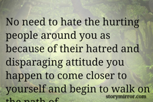 No need to hate the hurting people around you as because of their hatred and disparaging attitude you happen to come closer to yourself and begin to walk on the path of self-enlightenment.