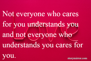 Not everyone who cares for you understands you and not everyone who understands you cares for you.
