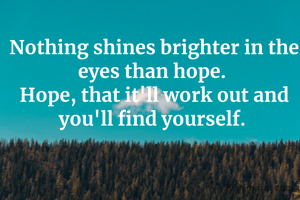 Nothing shines brighter in the eyes than hope. Hope, that it'll work out and you'll find yourself.