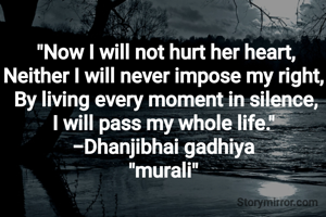 "Now I will not hurt her heart, Neither I will never impose my right, By living every moment in silence, I will pass my whole life." -Dhanjibhai gadhiya "murali"