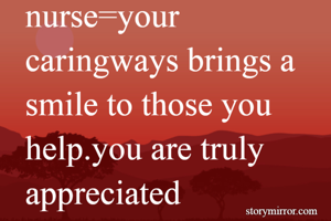 nurse=your caringways brings a smile to those you help.you are truly appreciated