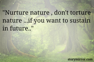 "Nurture nature , don't torture nature ...if you want to sustain in future.."