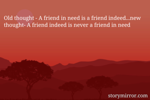 Old thought - A friend in need is a friend indeed...new thought- A friend indeed is never a friend in need