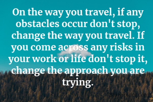 On the way you travel, if any obstacles occur don't stop, change the way you travel. If you come across any risks in your work or life don't stop it, change the approach you are trying.