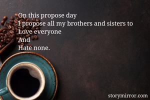 On this propose day I propose all my brothers and sisters to Love everyone And Hate none.