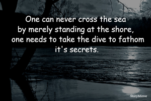 One can never cross the sea by merely standing at the shore, one needs to take the dive to fathom it's secrets.