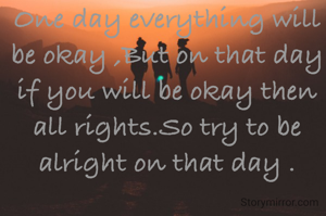 One day everything will be okay ,But on that day if you will be okay then all rights.So try to be alright on that day .
