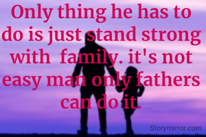 Only thing he has to do is just stand strong with family. it's not easy man only fathers can do it.