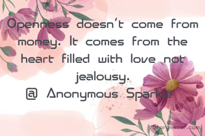 Openness doesn't come from money. It comes from the heart filled with love not jealousy. @ Anonymous Sparkle