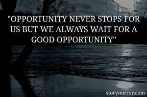 "OPPORTUNITY NEVER STOPS FOR US BUT WE ALWAYS WAIT FOR A GOOD OPPORTUNITY"