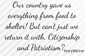 Our country gave us everything from food to shelter! But can't just we return it with, Citizenship and Patriotism?