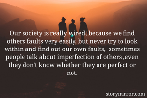 Our society is really wired, because we find others faults very easily, but never try to look within and find out our own faults, sometimes people talk about imperfection of others ,even they don't know whether they are perfect or not.