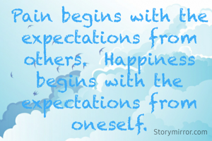 Pain begins with the expectations from others. Happiness begins with the expectations from oneself.
