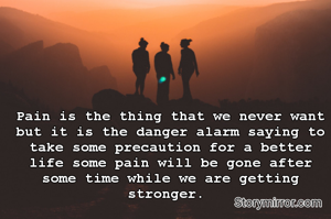 Pain is the thing that we never want but it is the danger alarm saying to take some precaution for a better life some pain will be gone after some time while we are getting stronger.