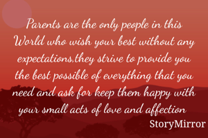 Parents are the only people in this World who wish your best without any expectations,they strive to provide you the best possible of everything that you need and ask for keep them happy with your small acts of love and affection