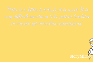 "Patience is bitter but it's fruit is sweet. It is very difficult sometimes to be patient but later on one can get more than expectations."