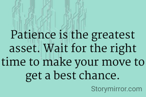 Patience is the greatest asset. Wait for the right time to make your move to get a best chance.