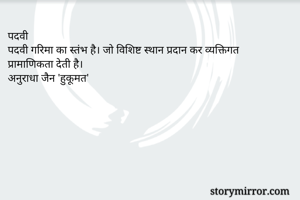 पदवी गरिमा का स्तंभ है। जो विशिष्ट स्थान प्रदान कर व्यक्तिगत प्रामाणिकता देती है।