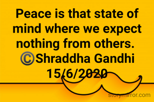 Peace is that state of mind where we expect nothing from others. ©️Shraddha Gandhi 15/6/2020