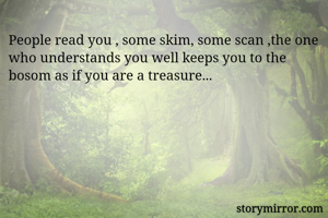 People read you , some skim, some scan ,the one who understands you well keeps you to the bosom as if you are a treasure...