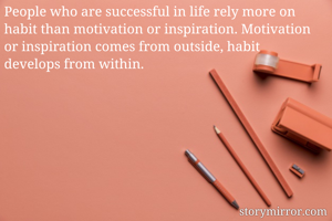 People who are successful in life rely more on habit than motivation or inspiration. Motivation or inspiration comes from outside, habit develops from within.