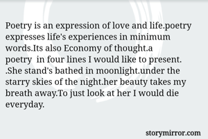 Poetry is an expression of love and life.poetry expresses life's experiences in minimum words.Its also Economy of thought.a