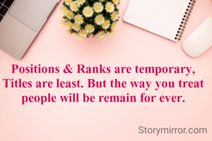 Positions & Ranks are temporary, Titles are least. But the way you treat people will be remain for ever.