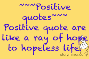 ~~~Positive quotes~~~ Positive quote are like a ray of hope to hopeless life.